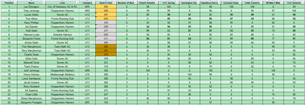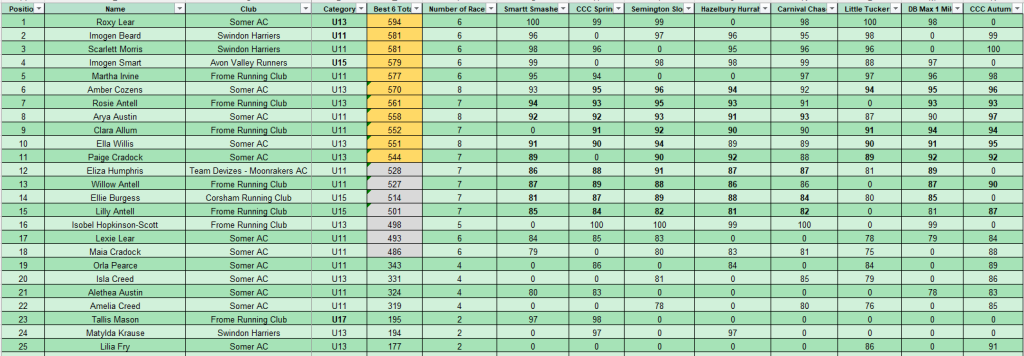 Wiltshire Junior Race League (WJRL) Results 2025 Final
